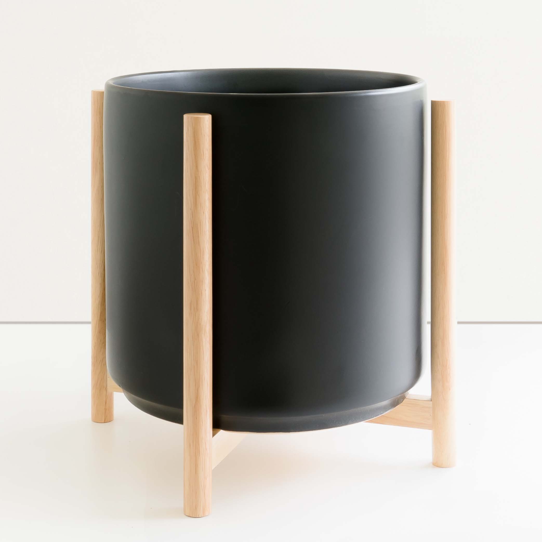 Peach Pebble 15 In Black Ceramic Planter With Natural Wood Stand 10 In 12 In Or 15 In Walmart Com